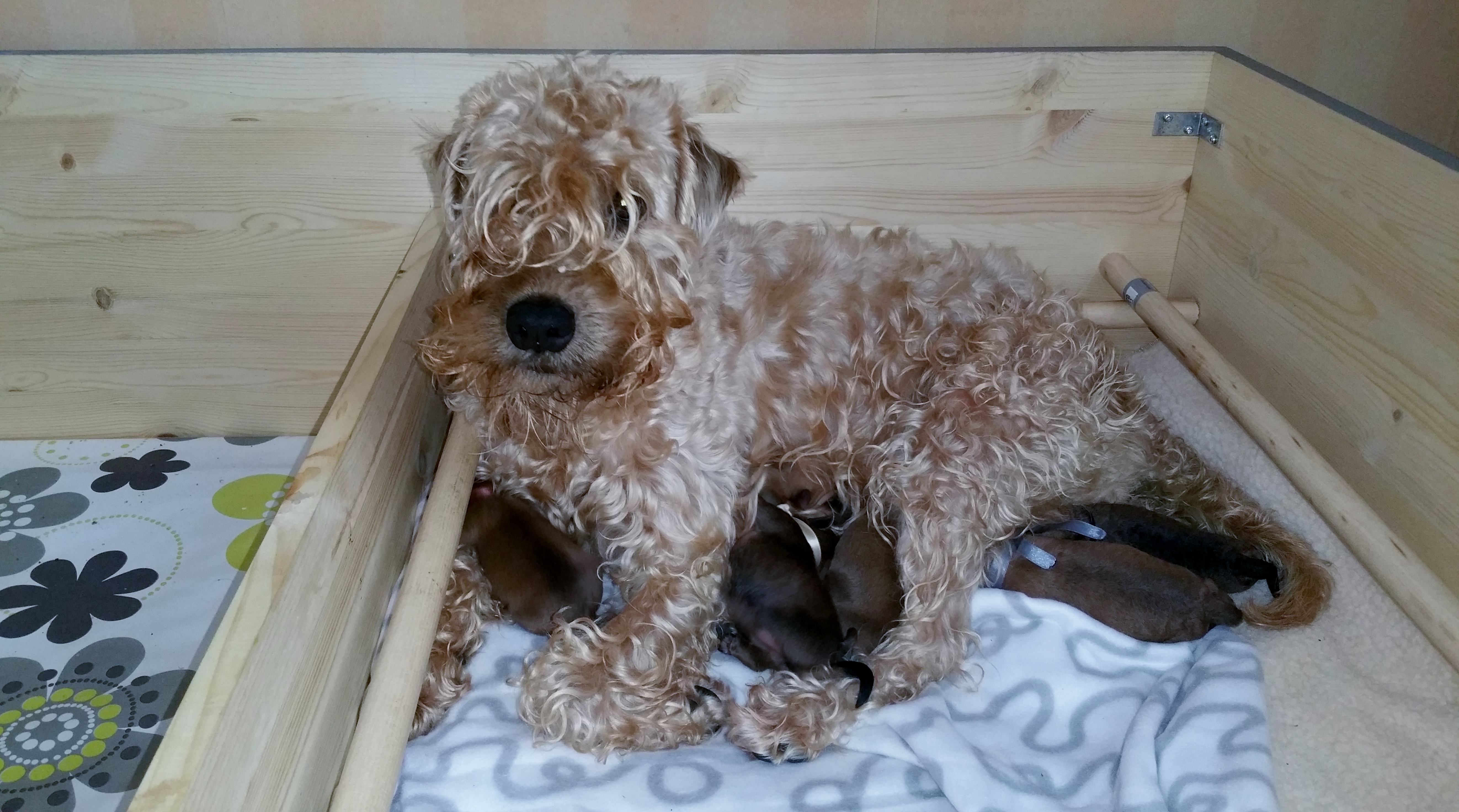 Torstain ja perjantain välisenä yönä ei nukuttu. Lempi oli todella levoton, petasi ja läähätti. Kuumemittari näytti kuitenkin edelleen 37,7-38 astetta. Ajattelin, että olen missannut lämmön laskun, niin selkeästi avautumisvaiheelta toiminta vaikutti. Vaan ei. Aamuyöstä pistin pitkäkseni ja nukuin muutaman tunnin kun Lempikin rauhoittui nukkumaan. Perjantaina aamupäivästä lämmöt laskivatkin ja oli selkeästi tosi kyseessä. Synnytys käynnistyi vähän ennen puoltayötä ja klo 00:48 ensimmäinen pentu oli maailmassa.